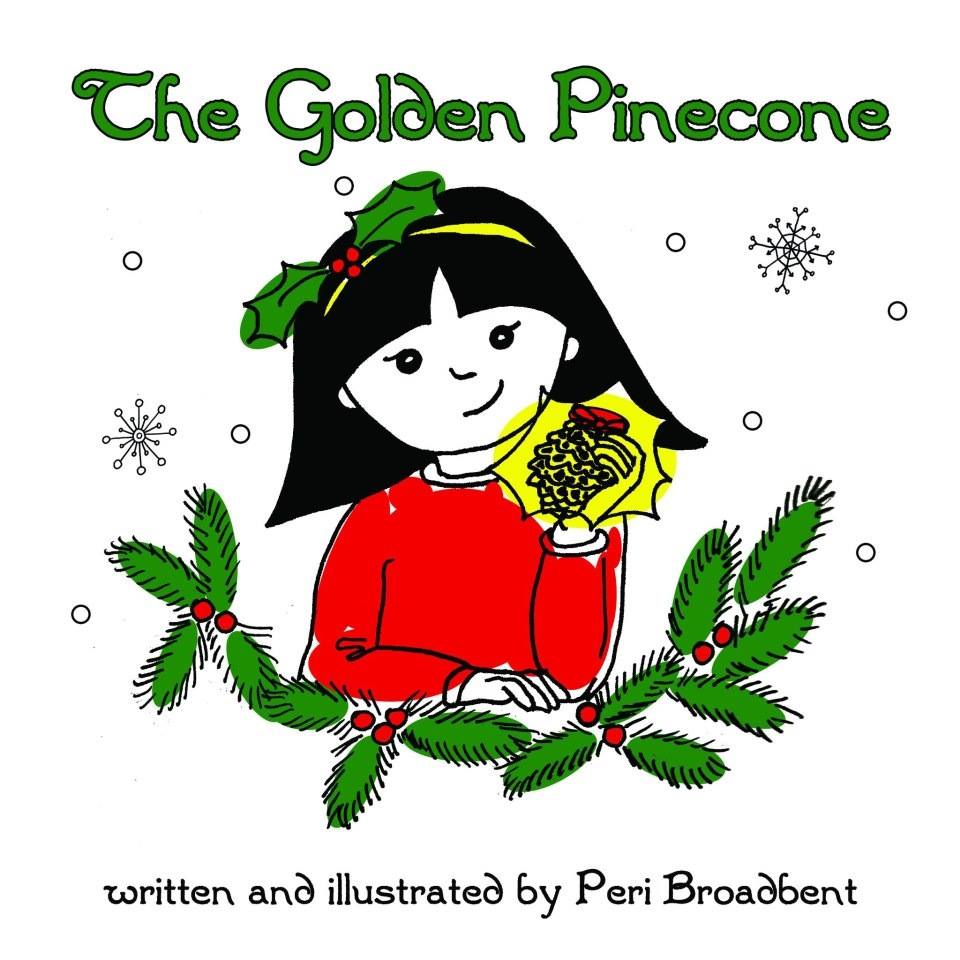 The Golden Pinecone is a story about a little girl, named Poppet (my own childhood nickname), who finds a pinecone on a walk in the woods, and loves it until magic turns it into gold – just in time for Christmas. I created the illustrations to echo certain simplistic styles of the ’50s and ’60s, with black lines and basic colors lain just outside the lines. I had visions of screenprinting the copies myself, using gold paint for all of the yellow parts (I actually still want to do this, someday), but I went in for CreateSpace – a site that provided a free ISBN and distribution on Kindle and Amazon, in exchange for holding your book file hostage. Here is the cover art: