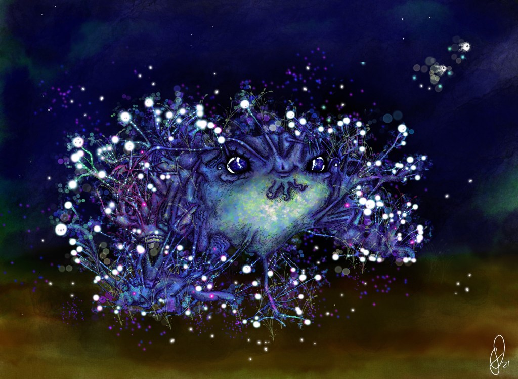 Pods possess a strong incandescent light glow that changes colors according to emotions being transferred telepathically. Pink means love, green means confidence, red means fear, and so on. It is because of these translatable lights that adult Cybele are considered oracles. They are often visited by travelers on a quest to find meaning or guidance in their lives.